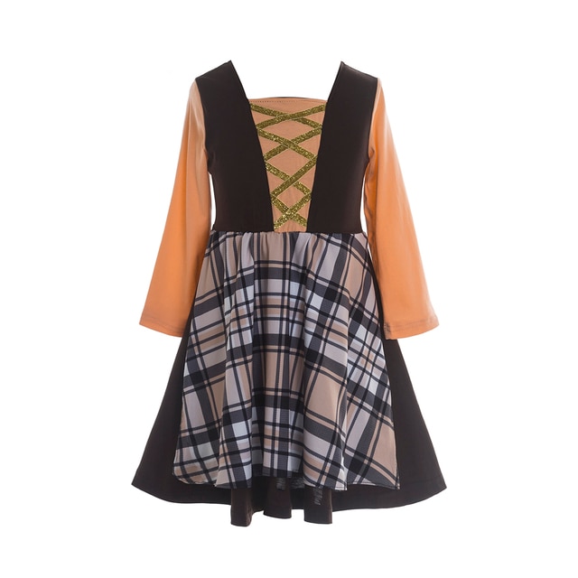 Mary Sanderson’s style reflects her playful and eccentric nature. Look for a dress that embodies a mix of whimsy and vintage charm. Opt for a flowing, ankle-length dress with loose sleeves in earthy tones such as olive green, mustard yellow, or burnt orange. Seek out dresses with subtle patterns like floral prints or paisley designs to add a touch of nostalgic charm. Consider details like ruffled collars or lace trims to enhance the overall whimsical aesthetic.