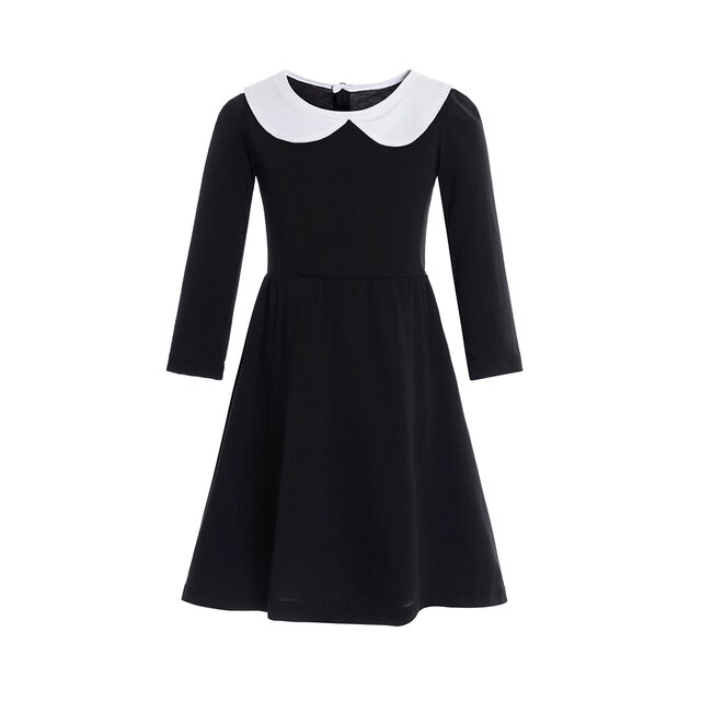 Collar: The uniform includes a detachable white collar that contrasts sharply against the black dress, paying homage to Wednesday’s distinctive fashion sense.